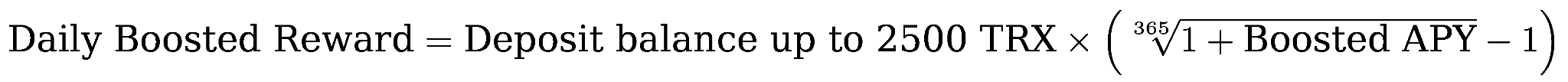 If the Boosted APY is 10%, then you will receive the reward with this APY on your deposit’s first 2,500 TRX only: